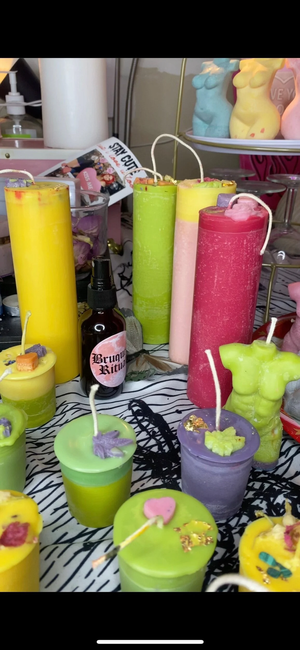 Locally sourced BeesWax Candle $22.22 Custom candle from $22.22 Baddie Brew $25.55 Sold out Money Honey $25.55 Sold out Limpia $50.00 POWER COUPLE $44.44 Sold out WAP $25.55 Sold out Mini Candles aka Babes $7.77 BDE $25.55 Sold out Como La Flor $22.22 Sold out Angel Candle $22.22 Reading $33.33 Cord cutting $22.22 Spiral notebook $18.50 Wine tumbler $25.50 Bruqueña Rituals Stickers $5.00 Bruqueña Rituals Mug $14.00 Bruqueña Rituals Crop Top $33.00 Bruqueña Rituals Yoga Leggings $50.50